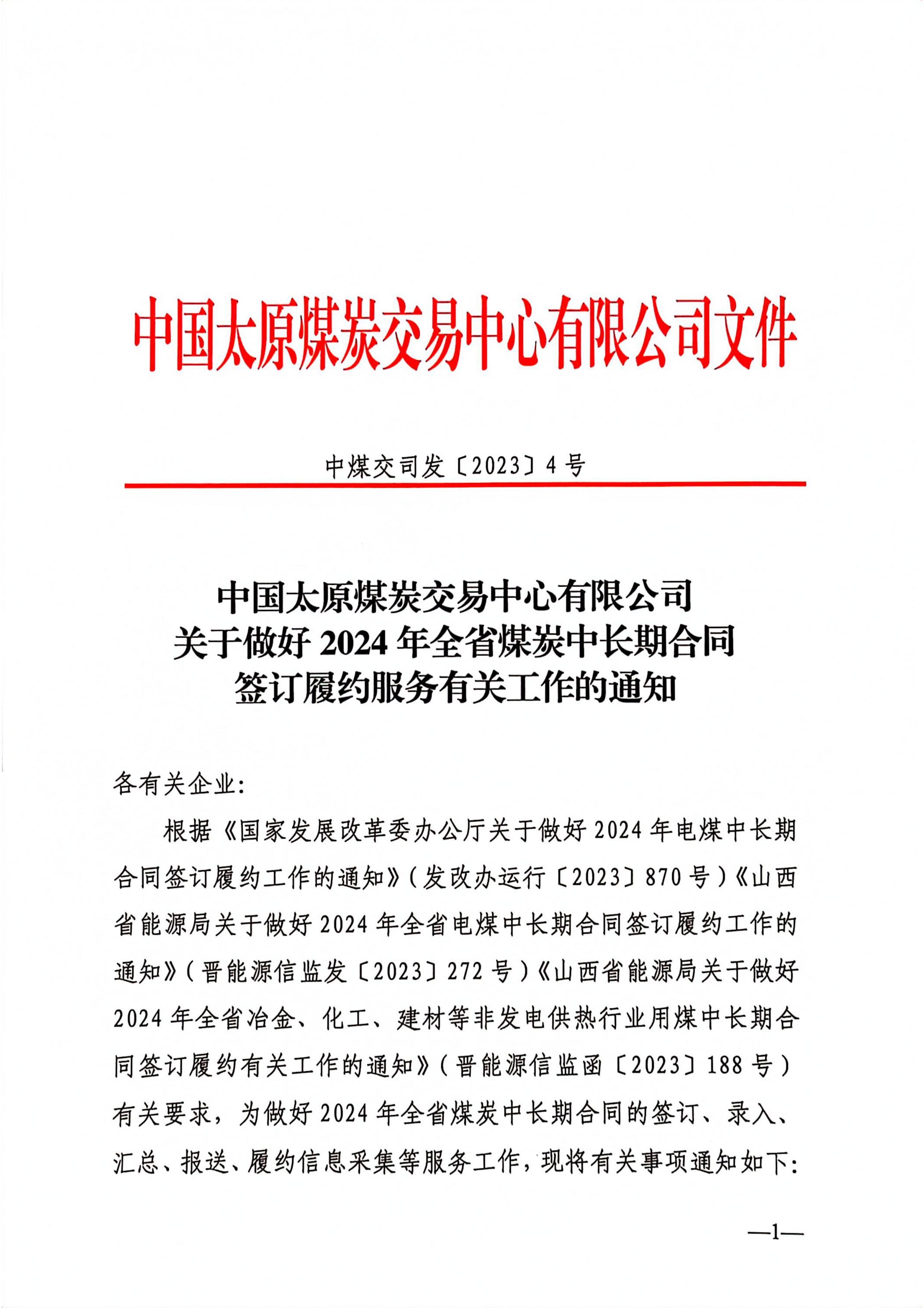 关于做好2024年全省煤炭中长期合同签订履约服务有关工作的通知