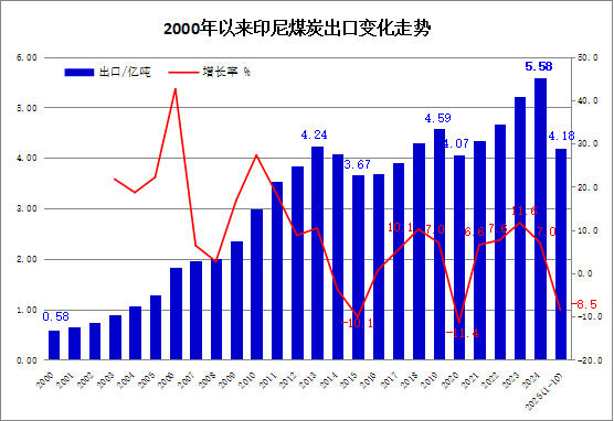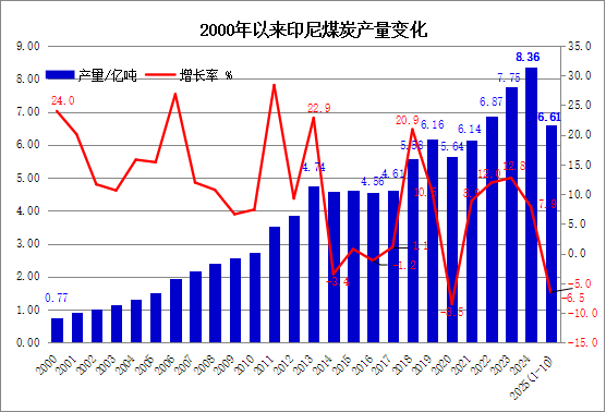 据印尼IDX 频道、Bloombergtechnoz、Dunia-energi等媒体11月27日发布的消息,印度尼西亚煤炭矿业协会(Asosiasi Pertambangan Batu Bara Indonesia - APBI)透露,截至2025年10月末,印度尼西亚的煤炭产量累计达6.61亿吨,并预计全年煤炭产量可能在7.4亿吨左右,较2024年实际产量8.36亿吨显著减少近1亿吨。