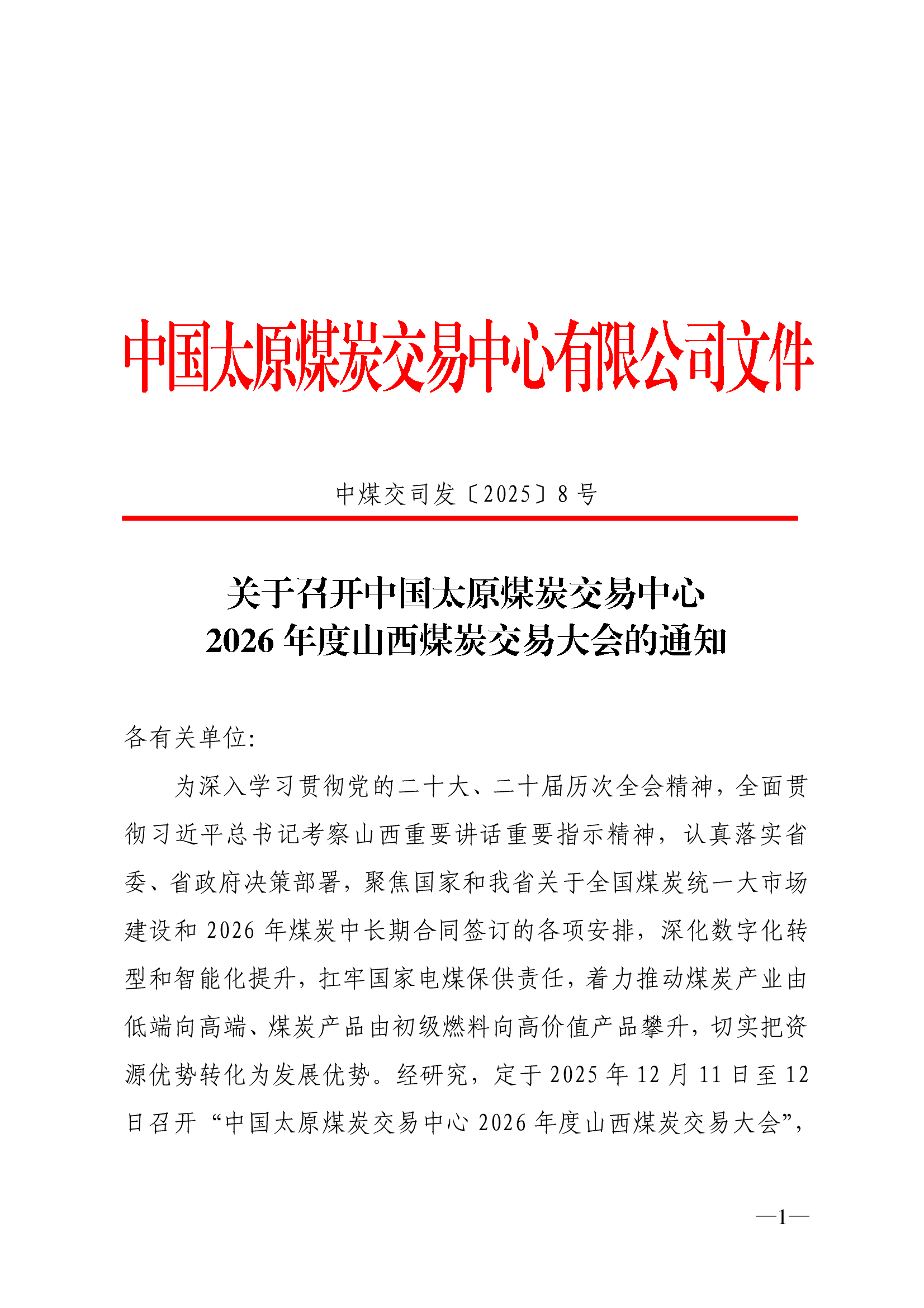 关于召开2026年度山西煤炭交易大会的通知