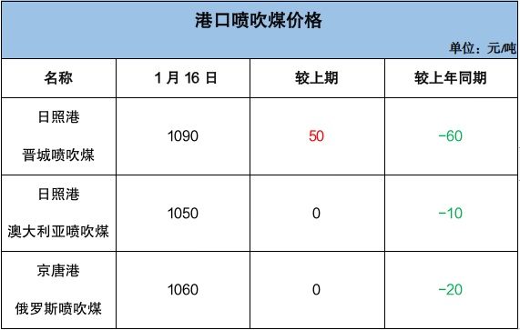 港口方面,日照港晋城喷吹煤价格周环比涨50元/吨,同比跌60元/吨。日照港、京唐港进口澳大利亚及俄罗斯喷吹煤价格周环比持平,同比跌10-20元/吨。