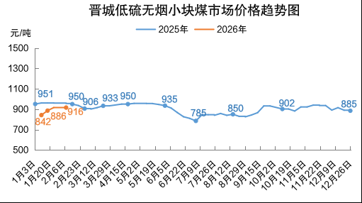 无烟煤市场暂稳运行,晋城地区中块品种小幅下跌。本周仍有部分装置停产检修的尿素企业复产,尿素开工负荷率87.66%,较上周环比上涨1.67%;煤头装置尿素企业开工率94.47%,较上周环比上涨1.2%。下游固定床化工企业补库需求释放有限,对原料煤采购以刚需为主,民用需求阶段性补库基本结束,贸易商、洗煤厂等中间环节持观望心态,无烟块煤市场活跃度不高。钢厂节前补库需求接近尾声,对原料煤保持按需采购,冶金用末煤市场以稳为主。
