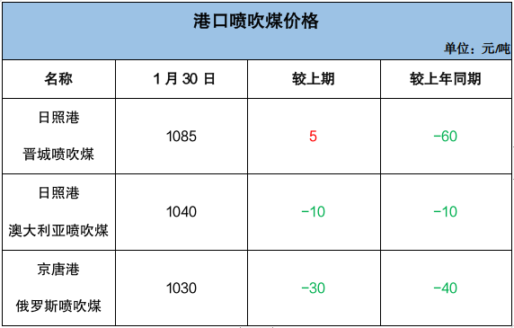 港口方面,日照港晋城喷吹煤价格周环比涨5元/吨,同比跌60元/吨。日照港澳大利亚喷吹煤周环比跌10元/吨,同比跌10元/吨。京唐港进口俄罗斯喷吹煤价格周环比跌30元/吨,同比跌40元/吨。