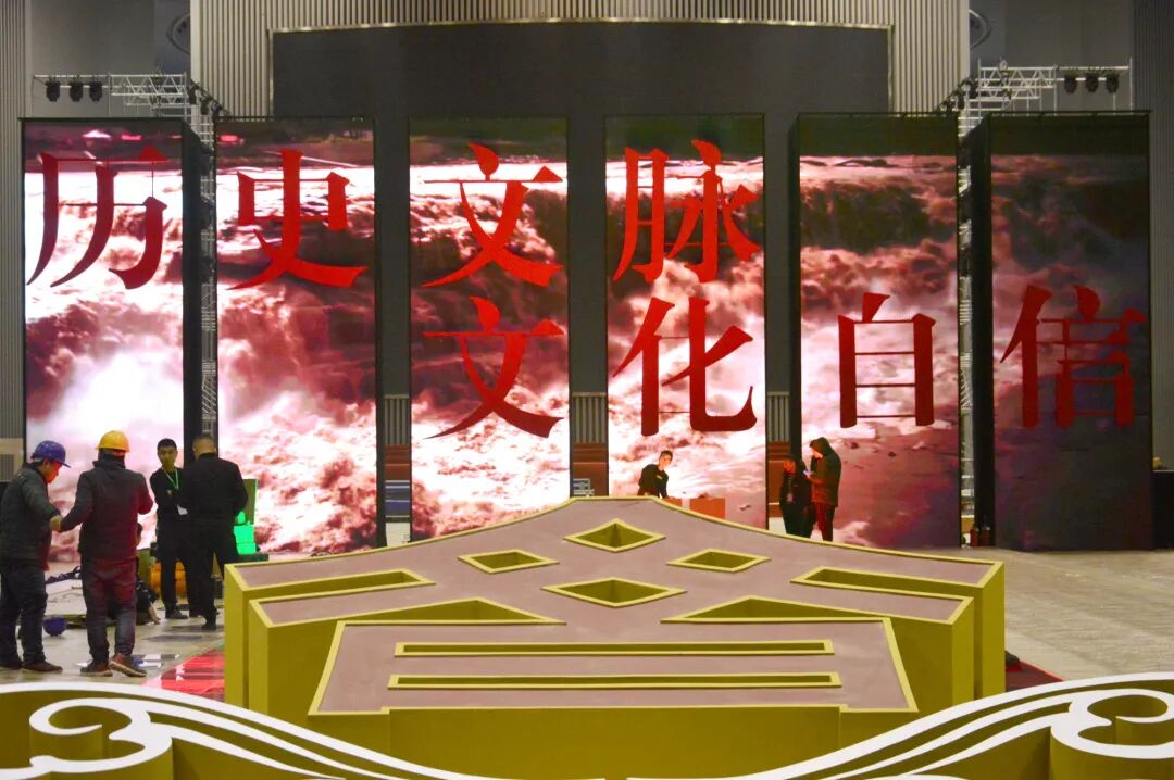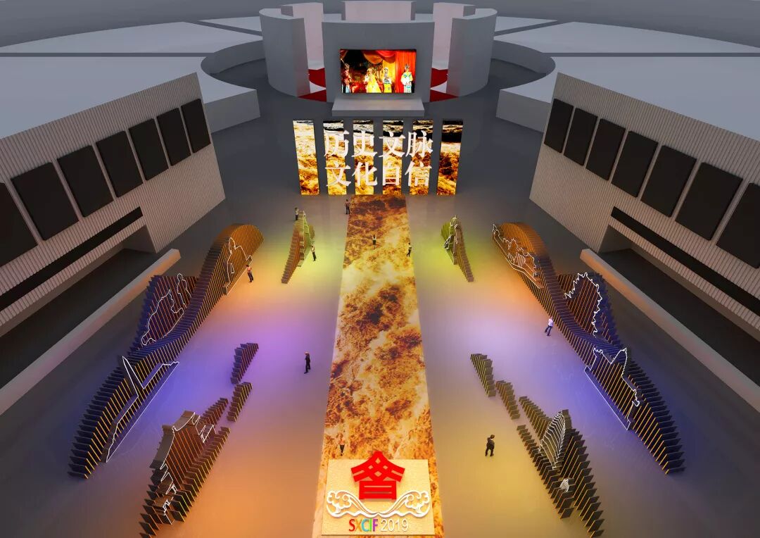 探馆-DAY1 距第四届山西文博会开幕仅剩1天, 中国(太原)煤炭交易中心主展馆热火朝天, 参展商陆续进场报到, 特装展位已经全面展开搭建工作, 很多展区展位已经颇有模样, 原先那些设计图上的草样渐渐成型, 小编带您走进文博会现场,提前探馆。 (设计图) 本届文博会主场馆,分为序厅、主序厅部分,为南门入口处部分,主要是围绕学习贯彻习近平总书记在黄河流域生态保护和高质量发展座谈会上的重要讲话精神,以“历史文脉、文化自信”为主题,通过形象设计和声光电等手段相结合的方式,展示山西的典型文化元素,反映我省深厚的黄河文化。 序厅搭建已进入尾声,正在调试各种部件 (文旅融合主题展区) 文化旅游融合板块重点展示沿黄文化旅游资源和我省构建全省域旅游发展“331”新格局,全力推进黄河、长城、太行三大板块建设新成就。 (媒体融合主题展区) 媒体深度融合板块重点展示近年来我省推动传统媒体与新兴媒体深度融合,打造新型传播平台,建设新型主流媒体取得的新突破。 (文化科技融合展区) 文化科技融合板块重点展示我省近年来推进文化科技融合发展取得的新进展,由我省唯一的国家级文化和科技融合示范基地省综改区负责。 12月5日——12月10日 中国(太原)煤炭交易中心 第四届山西文博会 静待您的光临