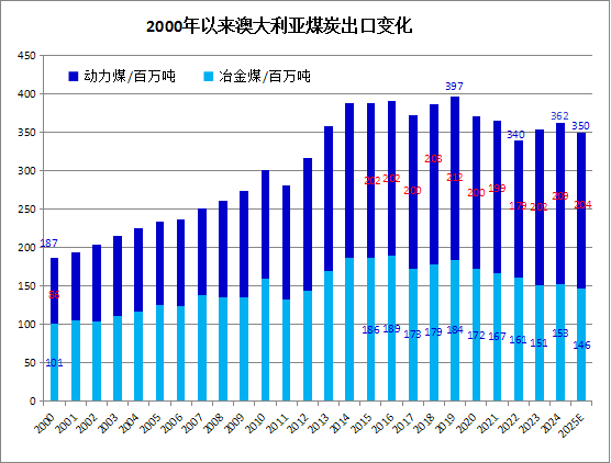 2025年全年,澳大利亚动力煤出口量累计为2.0533亿吨,与2024年的2.0284亿吨相比,同比下降1.2%。